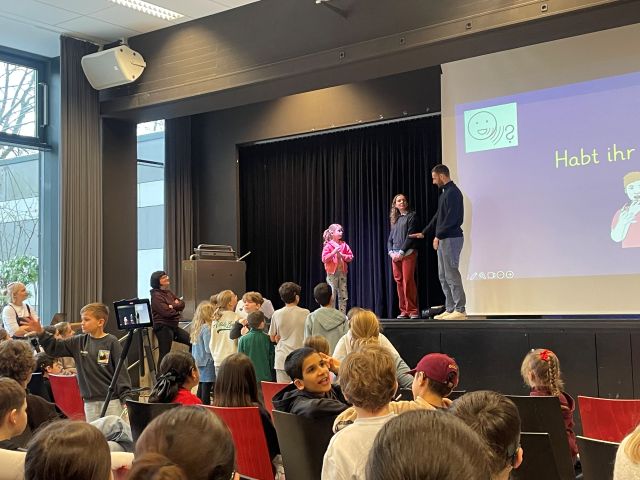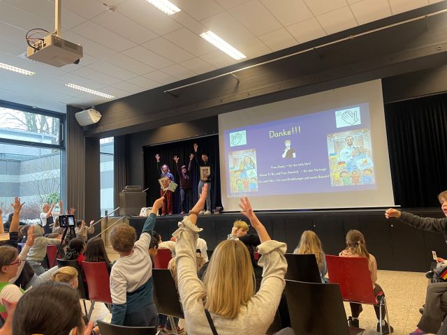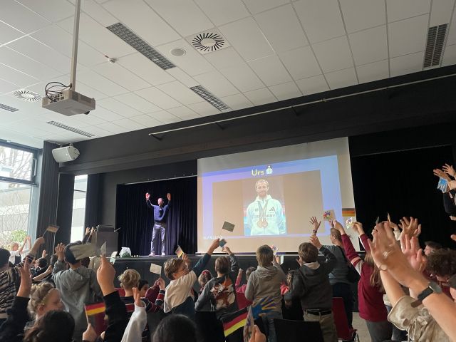 Am Montag, 26.01.2026 erwartete die Elbschule einen besonderen Besuch in der Aula: Zwei Deaflympioniken, die in Tokio Medaillen geholt hatten! Die Klasse 7/8a gab eine kleine Einführung zu den Deaflympics, um allen Schüler:innen einen Einblick in dieses besondere Sportereignis zu geben.
